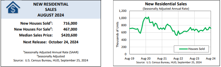 The median price of a new home sold during August slid to $420,600, compared to $429,000 in July. Year over year, the median price was down from $440,900 in August 2023.